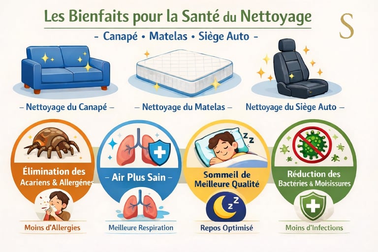 En effet, les mouvements à chaque assise sur un canapé ou un matelas mettent en mouvement dans l'air des poussières fines (PM2.5 / PM10), allergènes, cellules mortes, fibres textiles, poils et pollens accumulés au fil du temps qui sont inhalés.